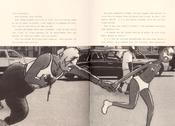 C’est son anniversaire depuis une heure à peine, elle porte une jolie robe et des chaussettes blanches. Elle dessine son enfer avec des crayons de couleurs et signe "Emily Jones, 12 ans. Fille noire qui en a marre. 100 ème rue Est. USA". Elle rêve d’arc-en ciel, en fuyant avec son papa Jupiter. Jupiter a tué le réveil et a cassé maman. Jean Vautrin et Baru collaborent pour nous rendre lisible et visible un univers d’amours et de violences. Avec une petite musique de blues.. |